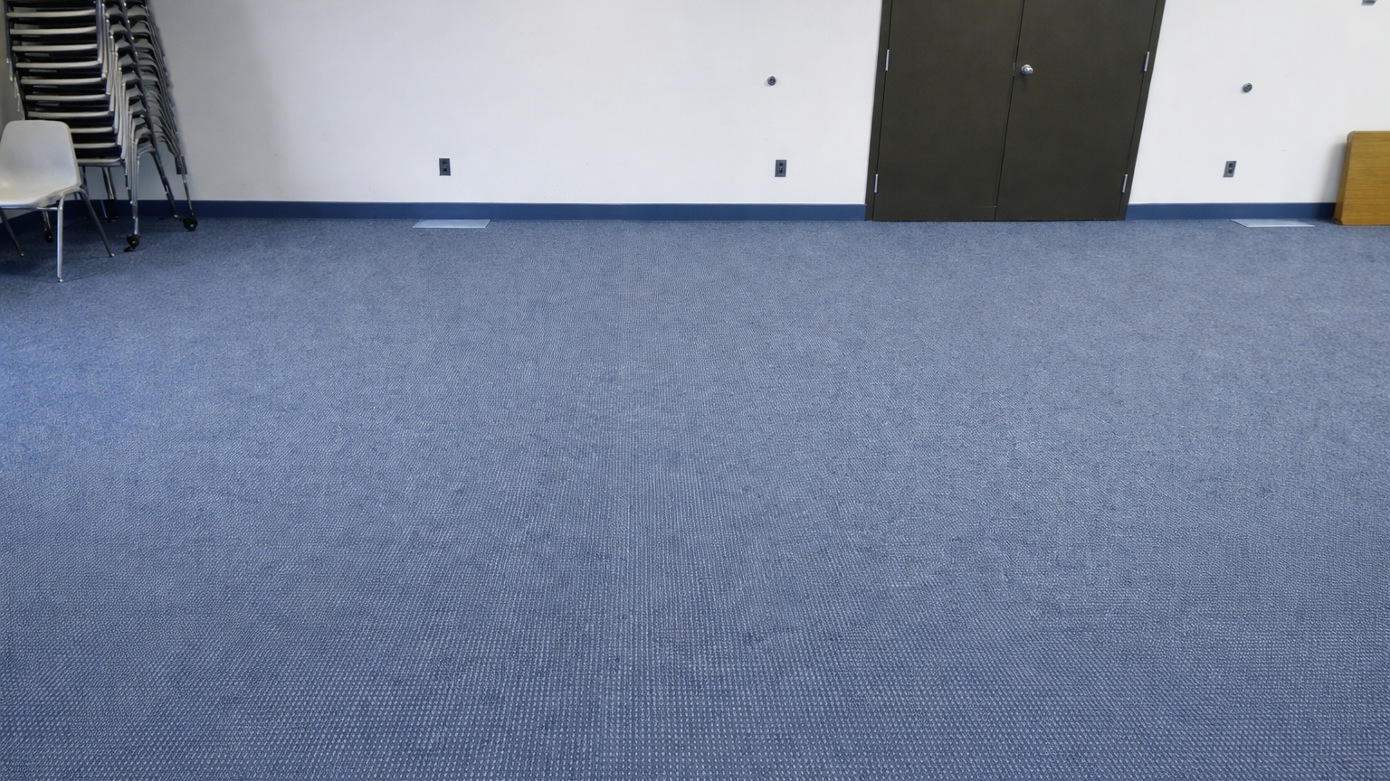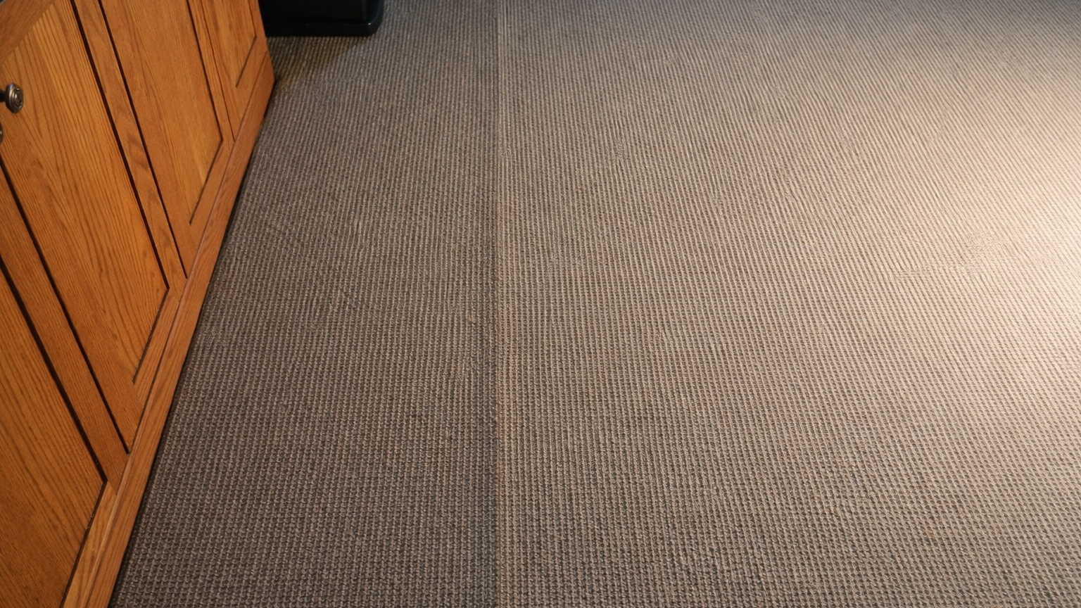 Spoj mezi dvěma pásy koberce je viditelný, zejména při pohledu z boku nebo při bočním osvětlení.