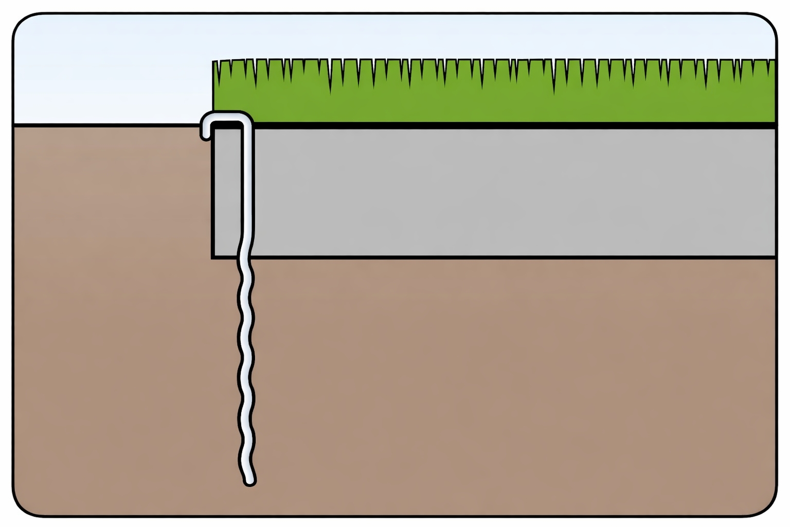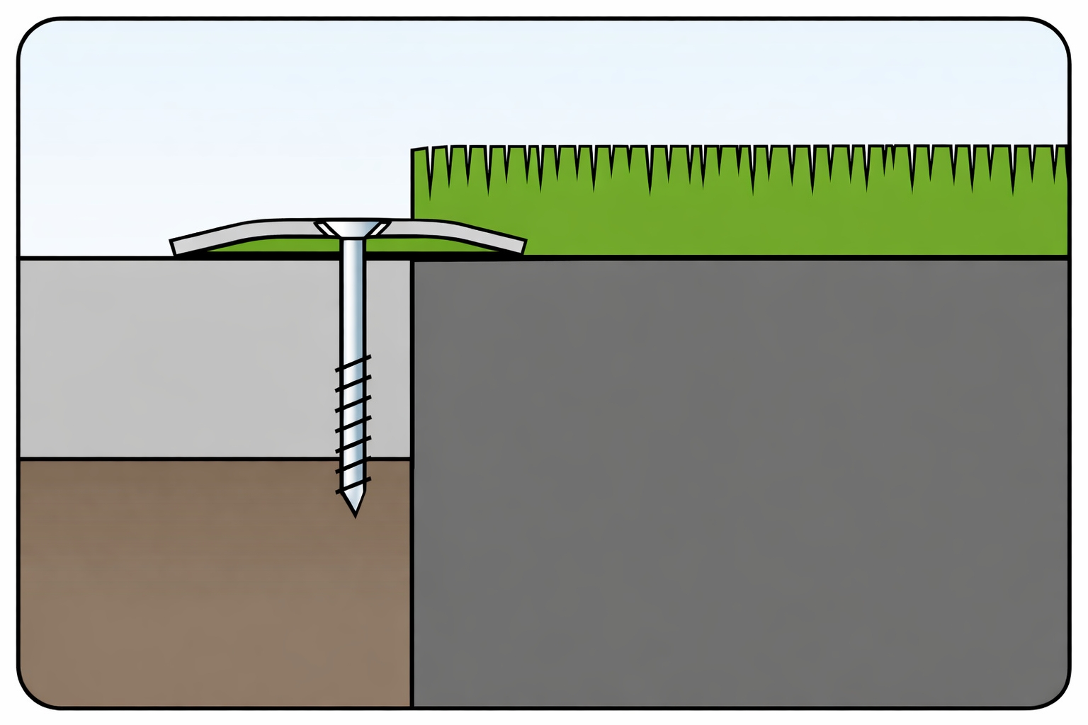 Fixace okrajů trávníku pomocí kotvících ocelových skob zatlučených do stabilního podloží.Používá se zejména u: