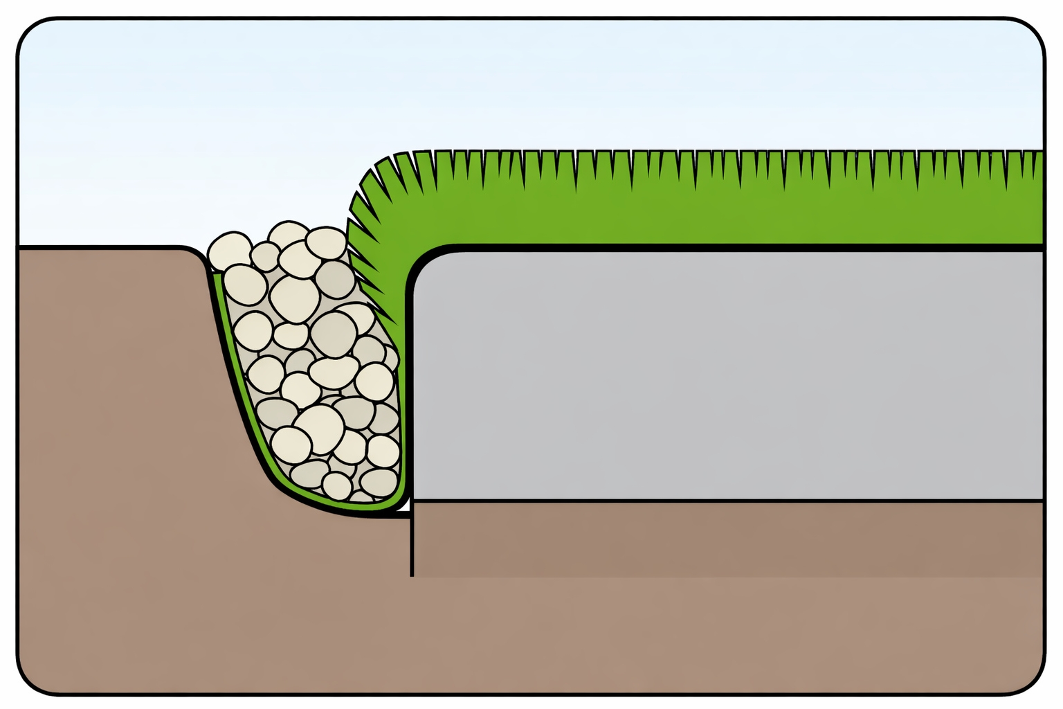 Hrany plochy musí být pevně zakončeny (obrubník, betonový lem, pevná dlažba).