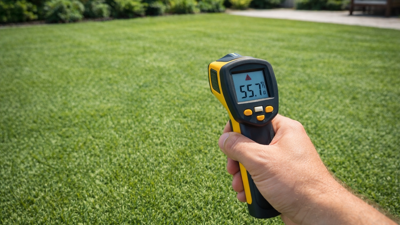 Měření provedené za velmi horkého dne (Newcastle, Austrálie – teplota vzduchu přes 40 °C) ukazuje, že umělý trávník se při přímém slunečním záření zahřívá na podobné hodnoty jako jiné běžné venkovní povrchy.