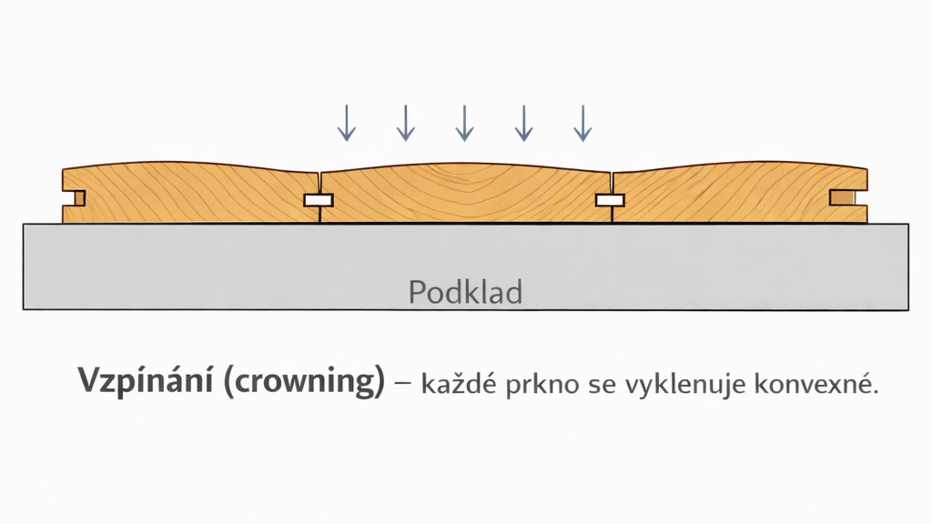 Každé jednotlivé prkno se prohne konkávně – okraje se zvednou, střed klesne.
