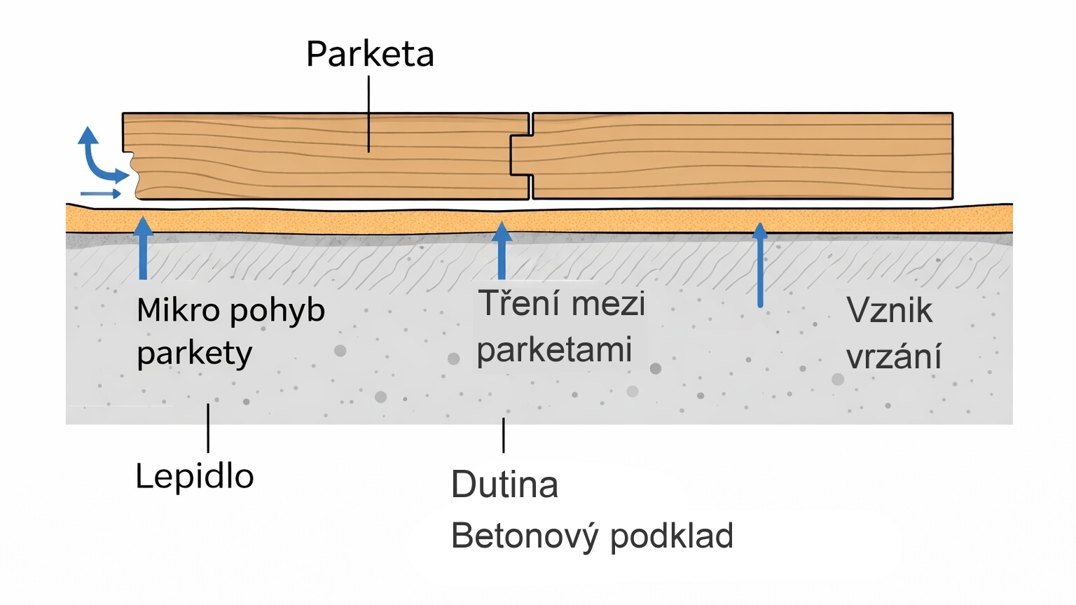 Vrzání parket – schéma vzniku zvukuKdy je problém jinde