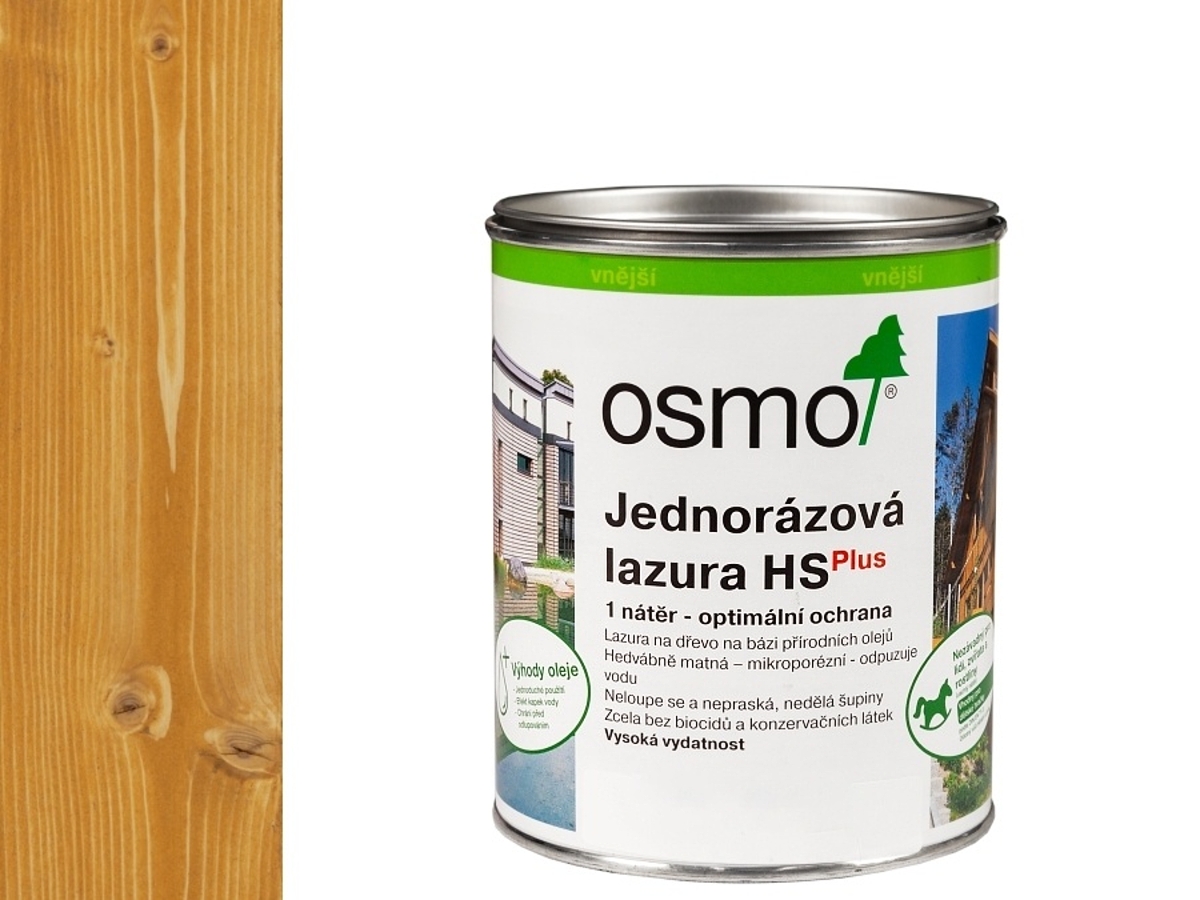 Jednorázová lazura OSMO 9221 Borovice HS Plus představuje moderní ochranný nátěr na bázi přírodních olejů určený pro všechny venkovní dřevěné plochy. Lazura neobsahuje biocidní látky ani konzervanty, je ekologická a bezpečná. Díky extrémně vysoké vydatnosti a technologii HS Plus stačí pouze jeden velmi tenký nátěr, což výrazně zkracuje čas aplikace i celkovou spotřebu materiálu.