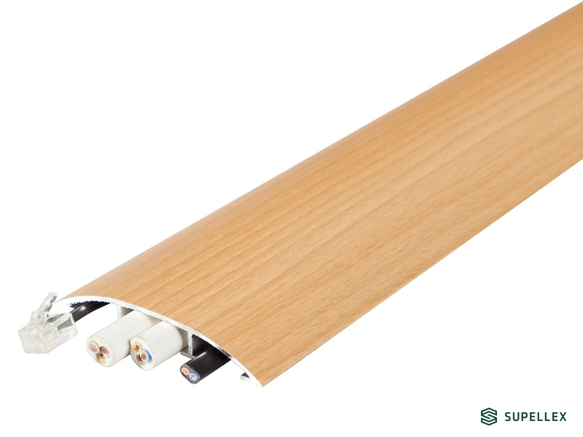 Profilteam 75 mm je hliníková samolepicí přechodová lišta s dekorem Dub bílý P26 (otěruvzdorná fólie). Slouží k bezpečnému vedení a zakrytí slaboproudých kabelů na podlaze i na stěně. Tři vnitřní komory udrží rozvody oddělené a přehledné (TV, telefon, data) a profilu dodávají pevnost pro běžné domácí i kancelářské použití.