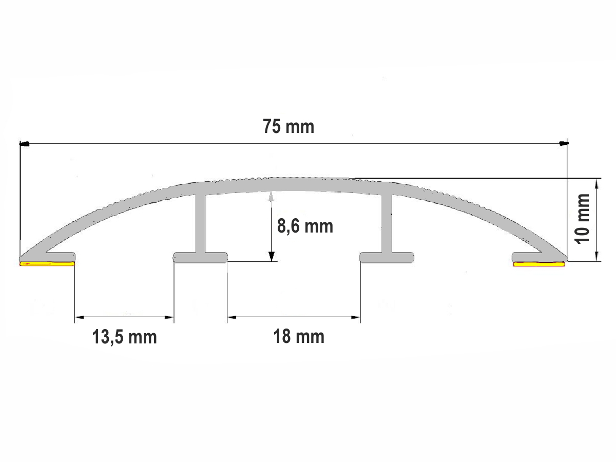 Profilteam 75 mm je hliníková samolepicí přechodová lišta s dekorem Teak antik P21 (otěruvzdorná fólie). Slouží k bezpečnému vedení a zakrytí slaboproudých kabelů na podlaze i na stěně. Tři vnitřní komory udrží rozvody oddělené a přehledné (TV, telefon, data) a profilu dodávají pevnost pro běžné domácí i kancelářské použití.