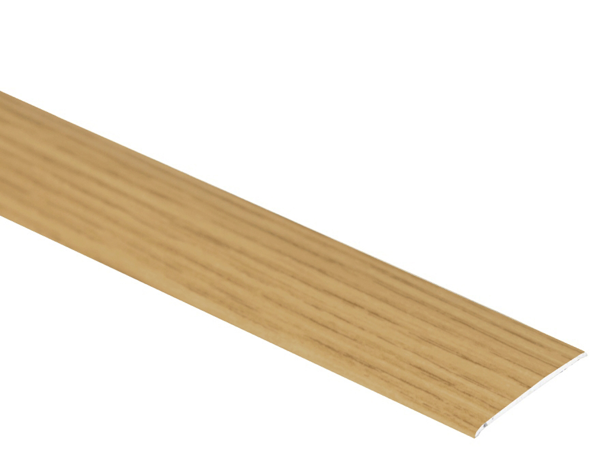 Samolepicí plochá přechodová lišta Profilteam – Dub E09 (fólie dřevodekor) pro čisté spojení dvou podlah v rovině nebo s maximálním převýšením 1 mm. Šířka 35 mm, délka 2700 mm, výška 2 mm. Bez viditelného kotvení, rychlá montáž bez vrtání.