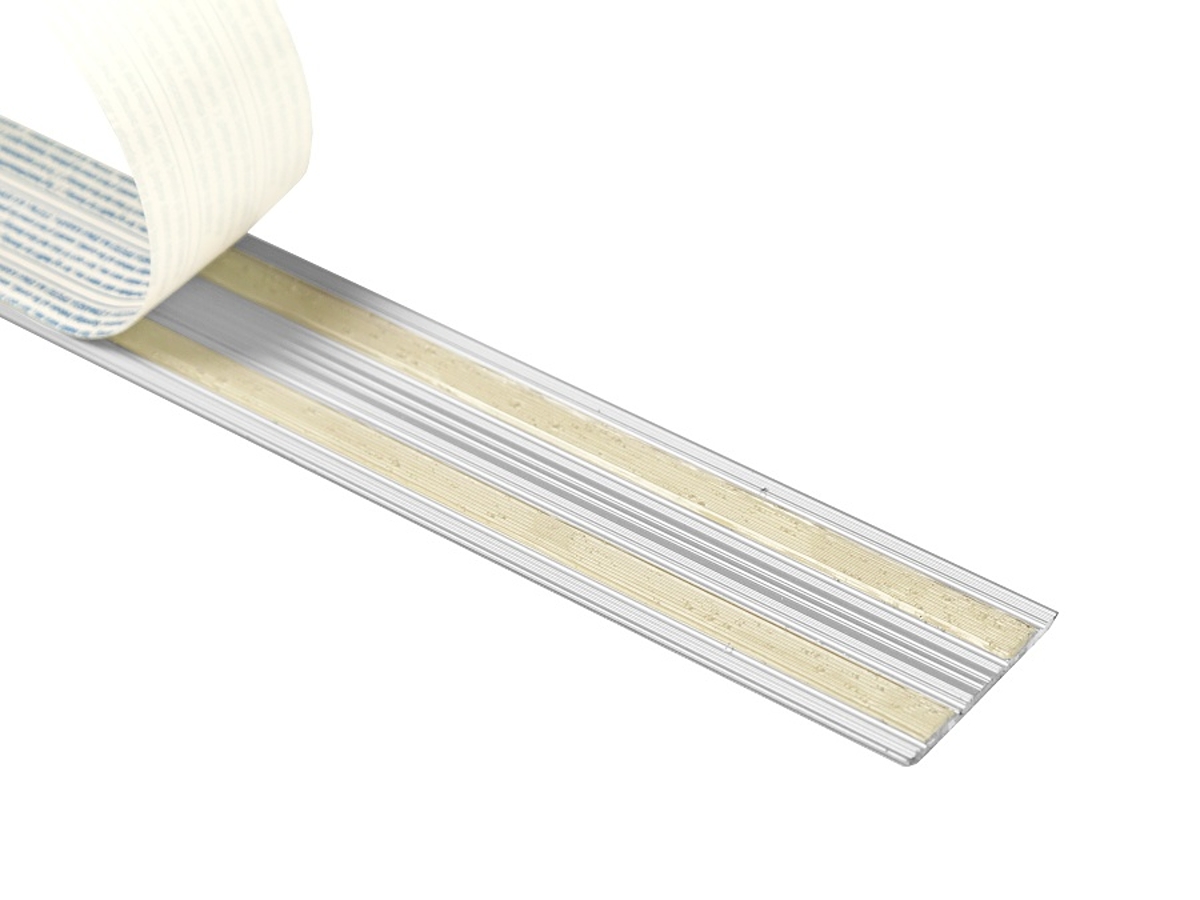 Hliníková plochá samolepicí přechodová lišta od českého výrobce Profilteam v dekoru Dub E09 sjednocuje a chrání spoj dvou podlah v rovině. Povrch je opatřen otěruvzdornou fólií dřevodekor pro dlouhou životnost a jednotný vzhled přechodu.