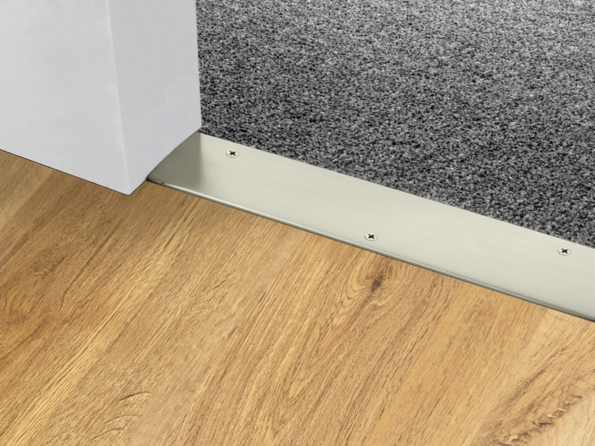 Šroubovací přechodová oblá lišta Profilteam překrývá a esteticky sjednocuje přechod dvou podlah v rovině či s rozdílem výšek do 7 mm. Šroubované kotvení je pevné, spolehlivé a umožňuje opakovanou demontáž i následnou montáž (například při výměně krytin).