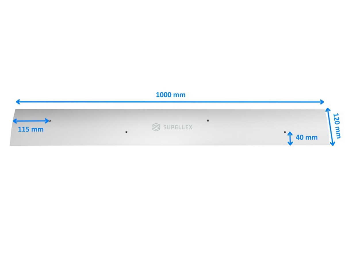 Extra široká šroubovací přechodová oblá lišta Profilteam z eloxovaného hliníku v odstínu Inox E07. Vhodná pro přechody podlah ve stejné výšce nebo s maximálním převýšením 7 mm, případně jako prahová lišta. Šířka 120 mm, délka 2000 mm, tloušťka 3,5 mm, výška 6,5 mm. Otvory jsou střídavě ve dvou řadách se zápustnou hlavou; montáž šrouby Torx Ø 3,5 mm. Vruty a hmoždinky jsou součástí dodávky.