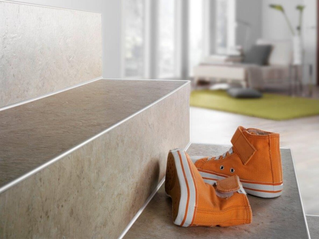 Hliníkový ohýbatelný profil Küberit 870 EB F2 imitace nerezi je určený pro obložení schodů s podlahovou krytinou do 2,5 mm. Vhodný pro schody ze dřeva, kamene, pódia i plošiny. Profil má otvory pro lepší přilnavost lepidla a bezpečné zasunutí krytiny. Instaluje se celoplošným lepením na rovný, tvrdý a suchý podklad – bez vrtání či šroubů. Profil lze ohýbat od poloměru 80 cm pomocí ohýbačky. Slitina EN AW-6060, povrch F2 – jemně kartáčovaná imitace nerezi (elox), třída reakce na oheň A1 (nehořlavé).