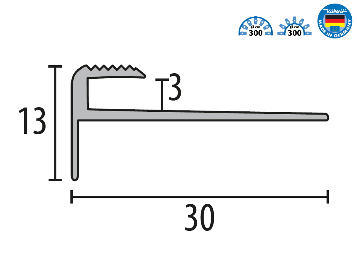 Hliníkový ohýbatelný profil Küberit 809 EB F2 imitace nerezi elox je určený pro obložení schodů s krytinou do 3 mm. Používá se u dřevěných a kamenných schodů, pódií a plošin. Profil má otevřeně děrované rameno pro přilnavost lepidla a rovnoměrné rozložení zátěže. Montáž probíhá lepením na rovný, suchý podklad bez použití šroubů. Profil lze ohýbat od poloměru 300 cm pomocí ohýbačky. Slitina EN AW-6060, povrch F2 imitace nerezi elox, reakce na oheň A1 (nehořlavé).