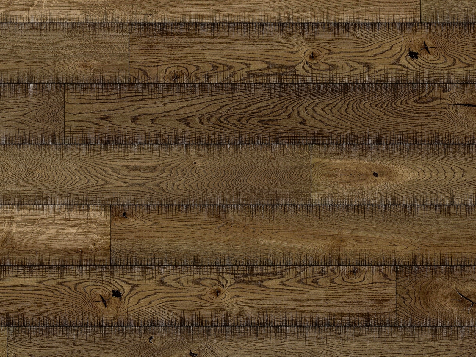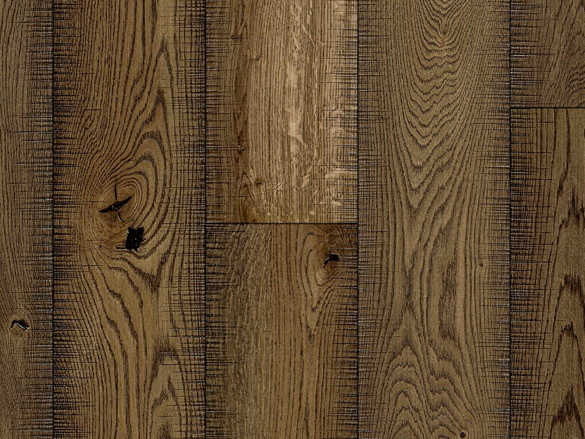 Třídění Original v odstínu Gotik – tmavá hnědá. Kartáčovaný a nepravidelně katrovaný (drásaný) povrch s jedinečným „pilovým“ vzorem; dotek místy drsnější i hladší. Prkno 190 mm, 2V, olejovaná úprava. Suky tmelené hnědým tmelem (černý na poptávku). Plovoucí pokládka; na podlahové vytápění do šířky 225 mm je předepsáno celoplošné lepení, max. 28 °C na povrchu. Dfl-s1, R = 0,11 m²K/W, λ = 0,13 W/mK. Délky: ~20 % 680–1200 mm, ~80 % 1720–2400 mm, až 20 % skládané.