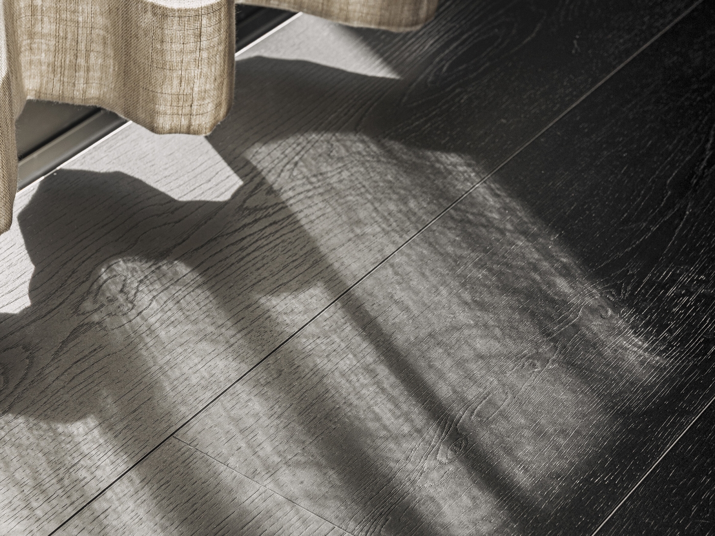 Chantilly působí klidně a elegantně – černý dub sjednotí prostor a dodá mu hloubku. Extra délka prken a 2V hrany opticky prodlouží místnost a potlačí počet spár.
