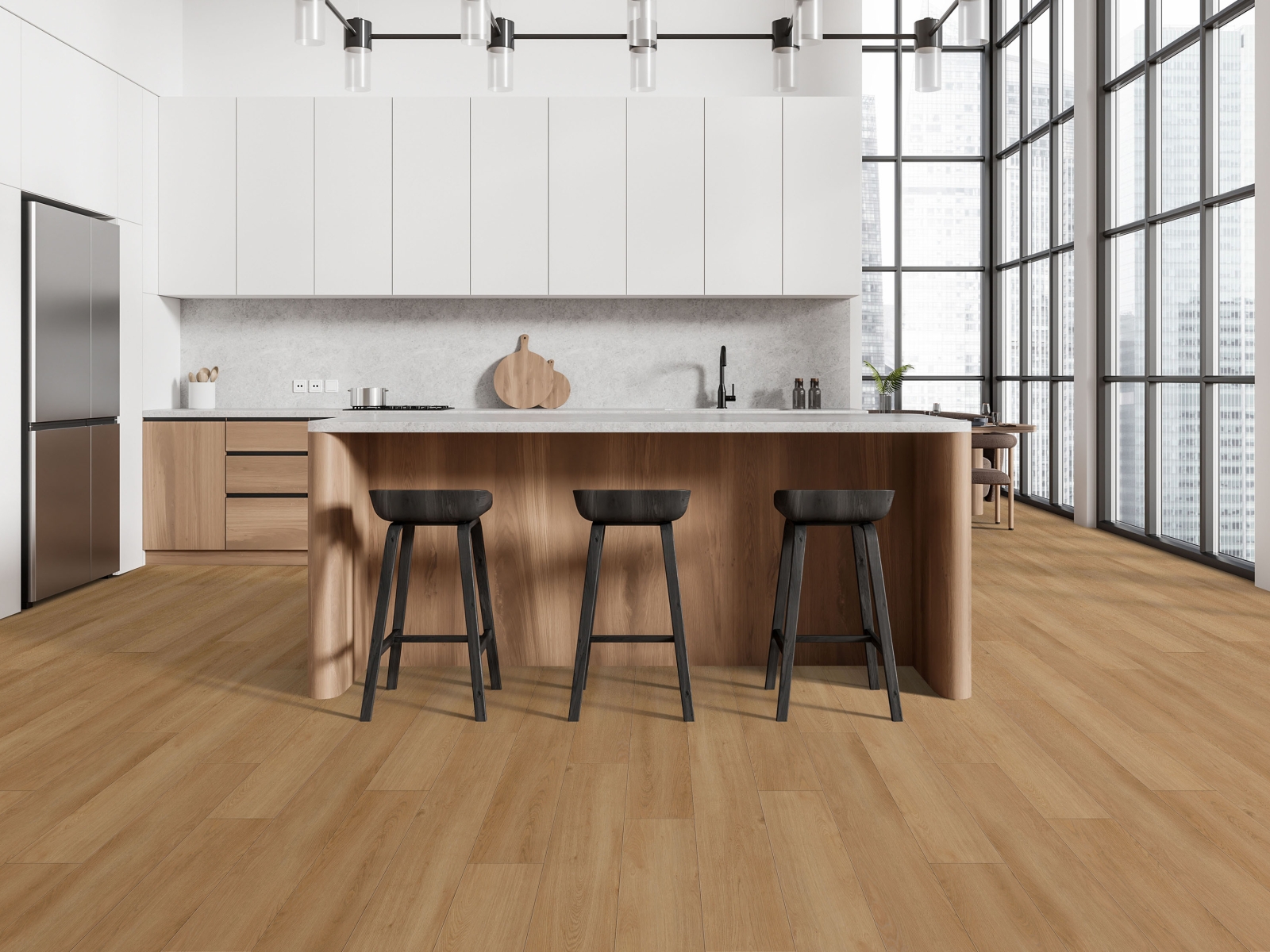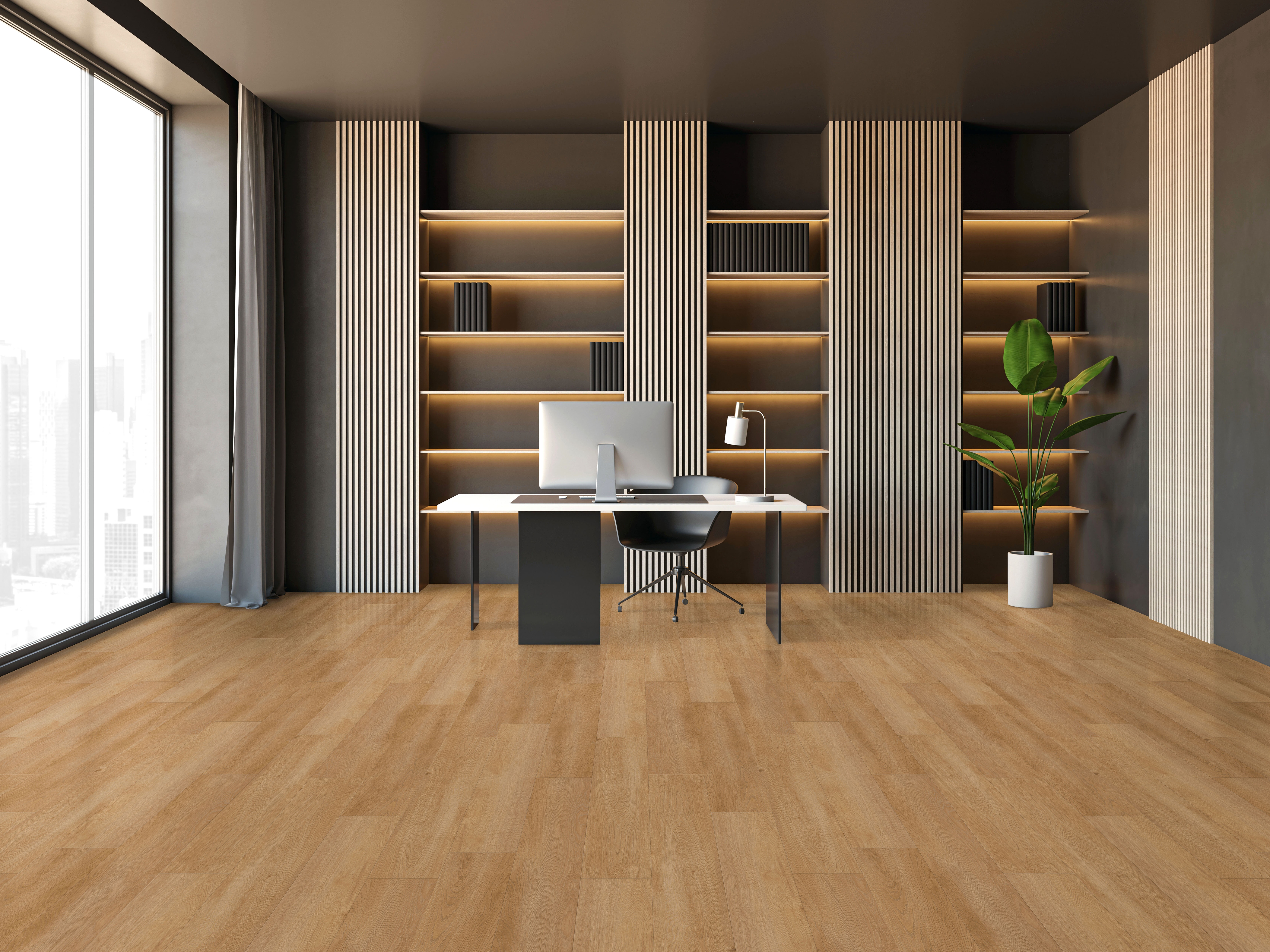 Vail – Plank nabízí středně tónovaný dřevodekor s přirozeným charakterem. Vyvážená kresba dřeva a reliéf Woodlay podporují realistický vzhled bez výrazného kontrastu. Formát lamely 1219,2 × 228,6 mm vytváří proporčně stabilní a vizuálně klidnou podlahovou plochu vhodnou pro obytné i projektové realizace.