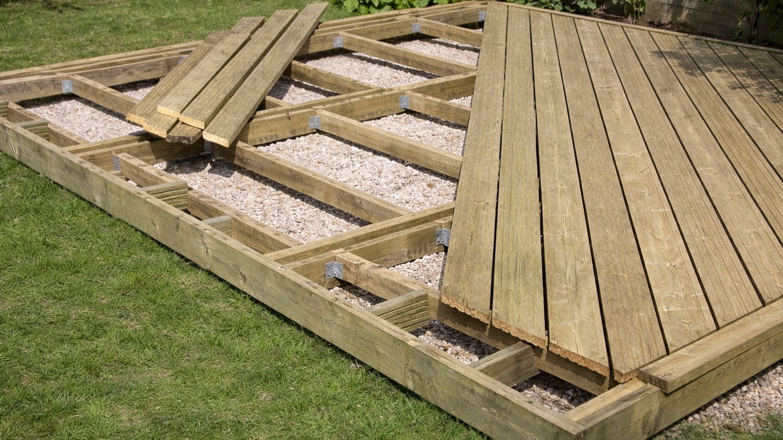 - Vzor diagonálně nebo rybí kost vyžaduje hustší rošt, aby se zajistila pevnost a stabilita (viz správná příprava podkladu a rozteč nosných trámů).