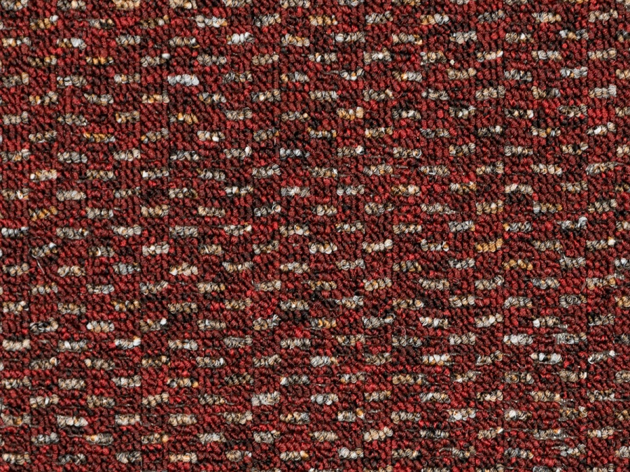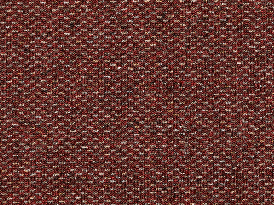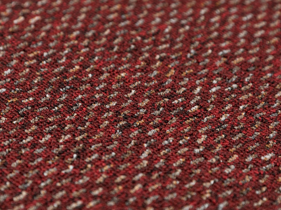 Zátěžový koberec Rubin 2159 – červená vášeň ve výprodeji jako celý kus 4 × 4 m (16 m²). Smyčkový vlas Level Loop zajišťuje vysokou odolnost proti sešlapání a snadnou údržbu. Vhodný pro kanceláře, recepce i běžné komerční provozy.